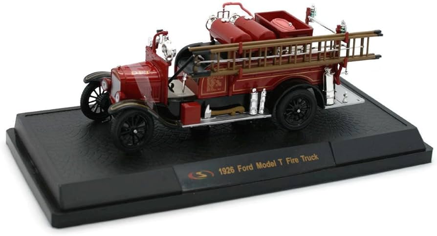 Relive the glory of early firefighting with this 1/32 diecast model of the 1926 Ford Model T Fire Engine in striking red and black by Signature Models. Crafted with remarkable attention to detail, this classic miniature brings vintage charm and history to any collection. Take advantage of our special offer and add this timeless piece to your display today!