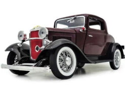 1932 Ford 3-Window Coupe Burgundy With Black Top 1/18 Diecast Model Car By Road Signature