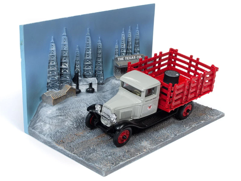 - Brand new 1/43 scale diecast model of 1930 Chevrolet Stake Truck with Eight Oil Barrels and Oil Derricks Diorama “Texaco” 12th in the “U.S.A. Series” die cast model by Auto World.