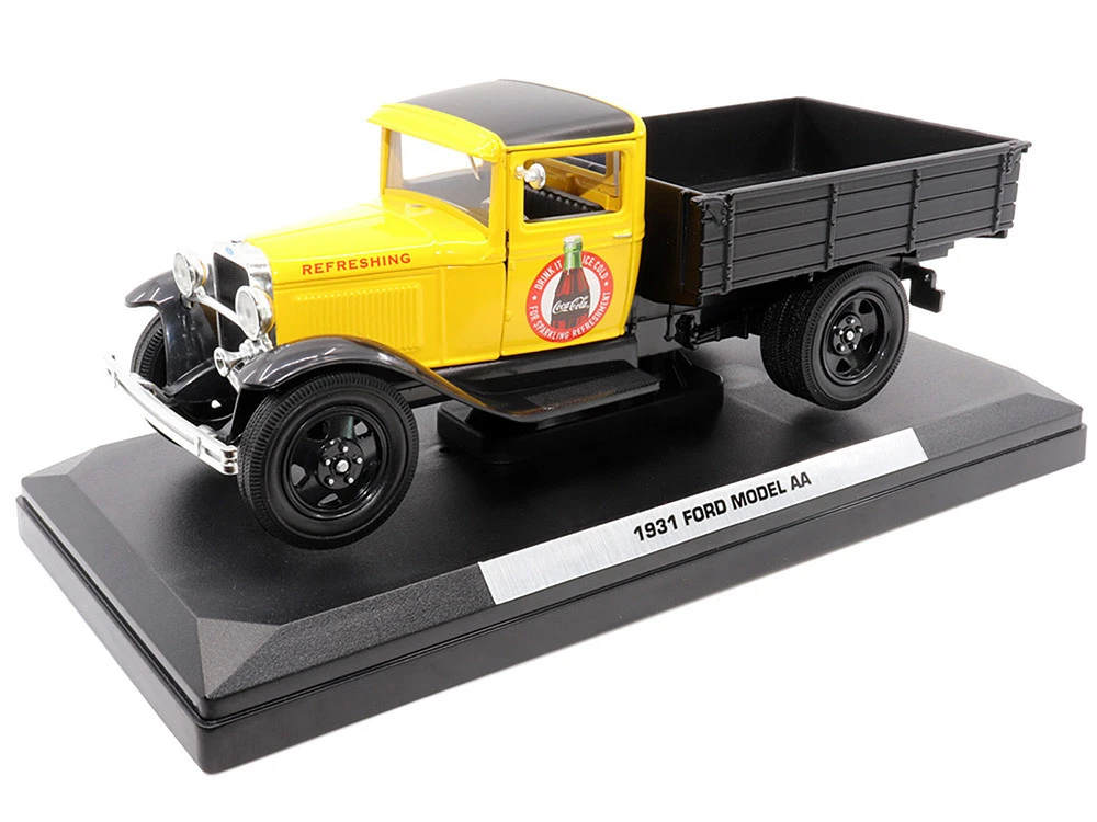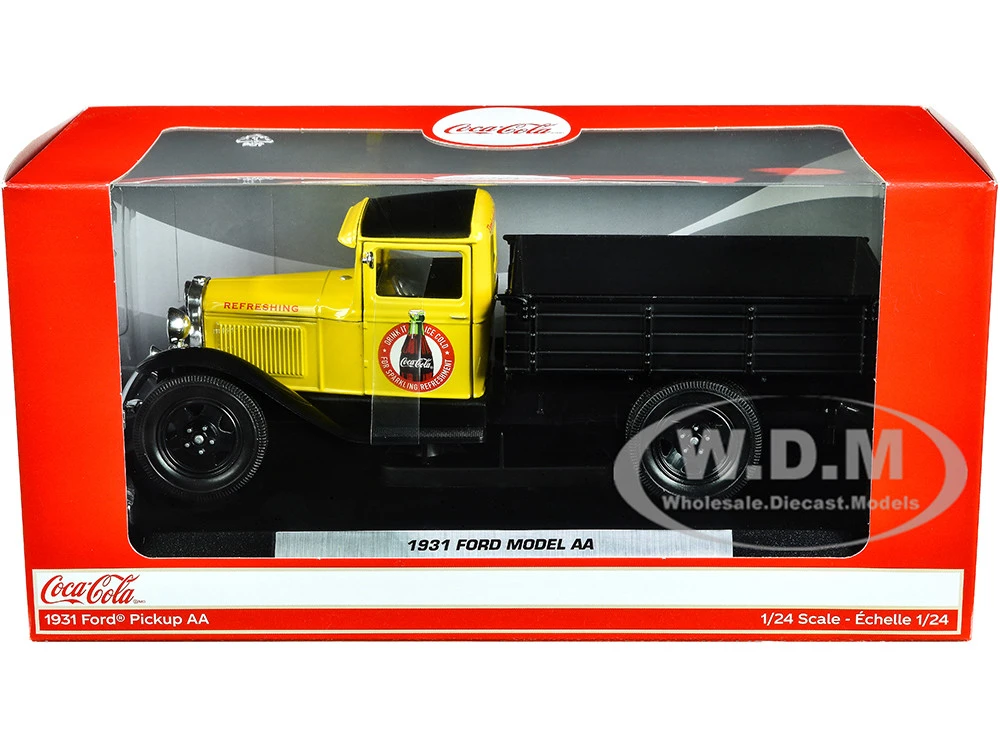 - Brand new 1/24 scale diecast car model of 1931 Ford Model AA Pickup Truck Yellow and Black “Drink it Ice Cold for Sparkling Refreshment – Coca-Cola” die cast model car by Motor City Classics.