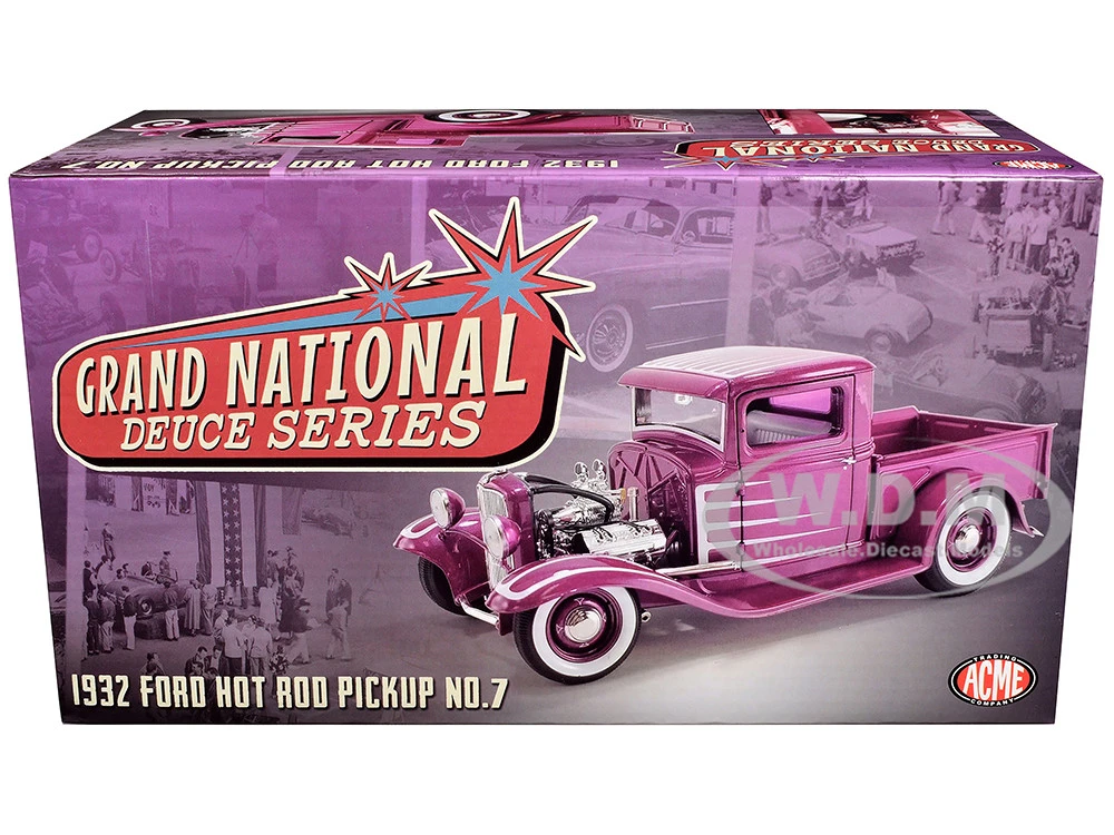 - Brand new 1/18 scale diecast car model of 1932 Ford Hot Rod Pickup Truck “Grand National Deuce Series #7” Cotton Candy Pink Metallic with White Graphics Limited Edition to 456 pieces Worldwide die cast model car by ACME.
