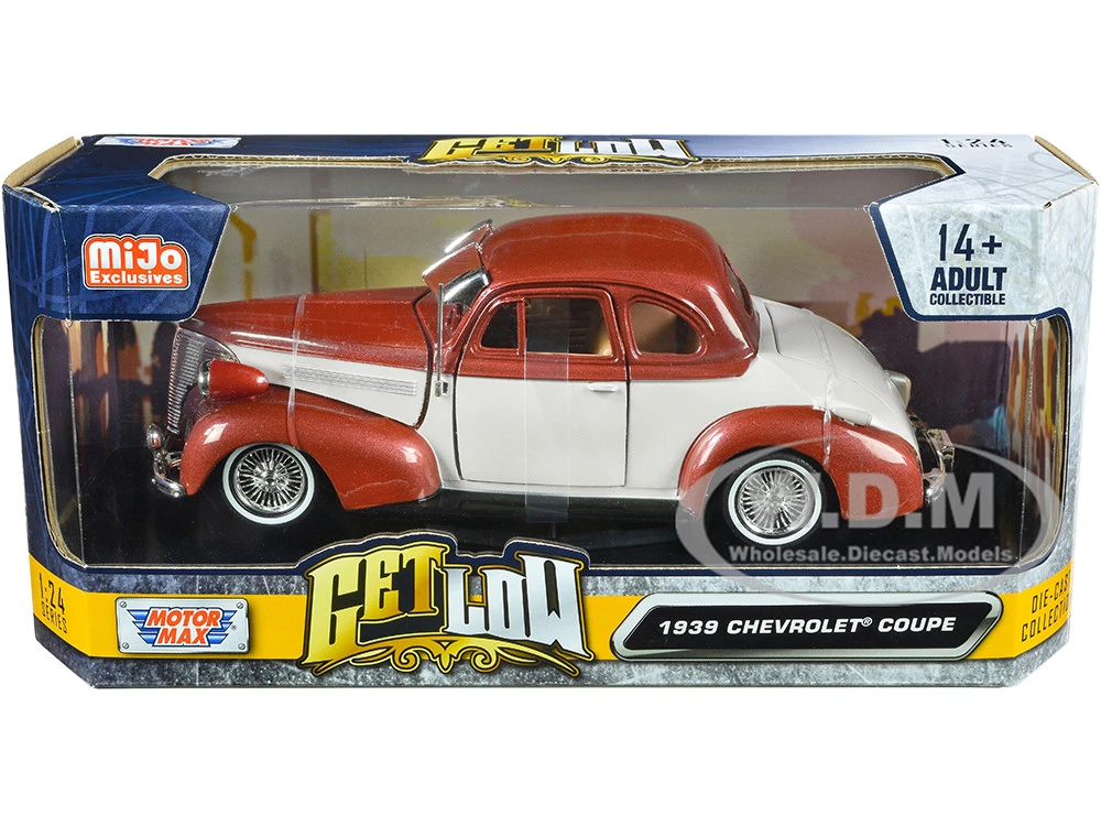 - Brand new 1/24 scale diecast car model of 1939 Chevrolet Coupe Lowrider Beige and Brown Metallic “Get Low” Series die cast model car by Motormax.