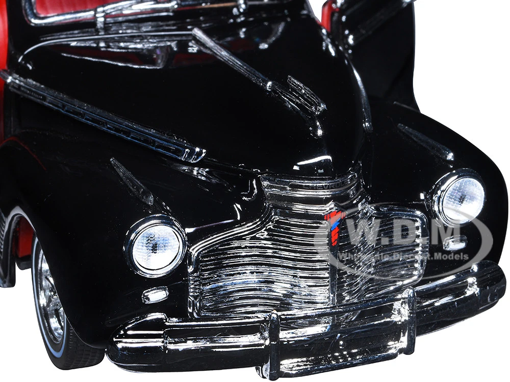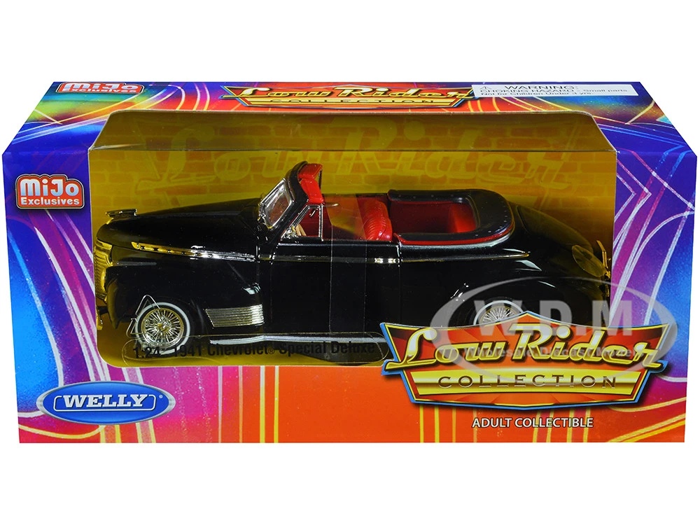 - Brand new 1/24 scale diecast car model of 1941 Chevrolet Special Deluxe Convertible Black with Red Interior “Low Rider Collection” die cast model car by Welly.