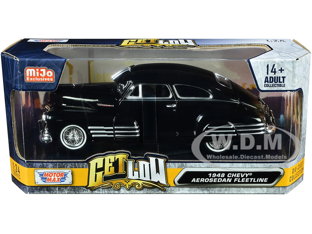- Brand new 1/24 scale diecast car model of 1948 Chevrolet Aerosedan Fleetside Lowrider Black “Get Low” Series die cast model car by Motormax.