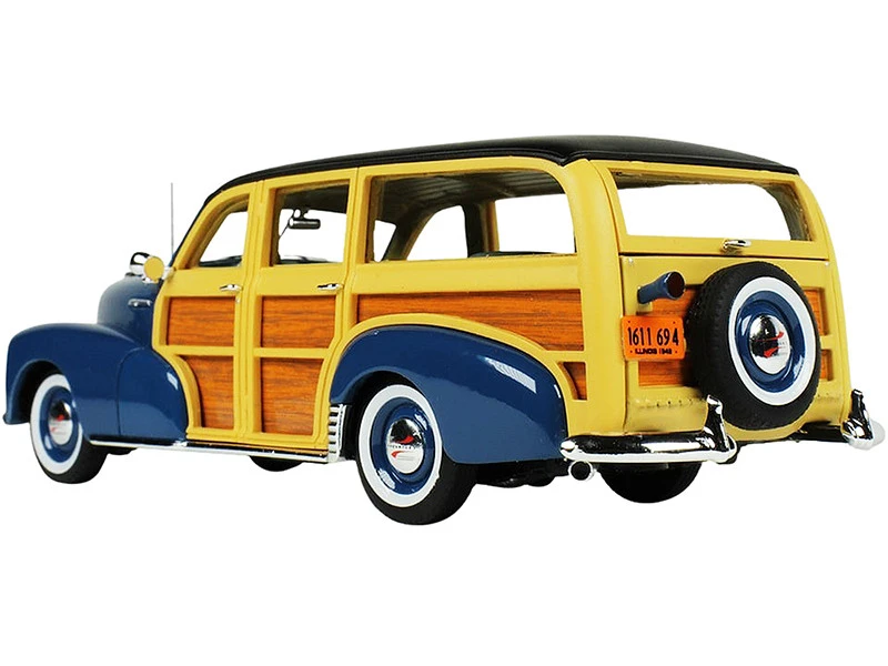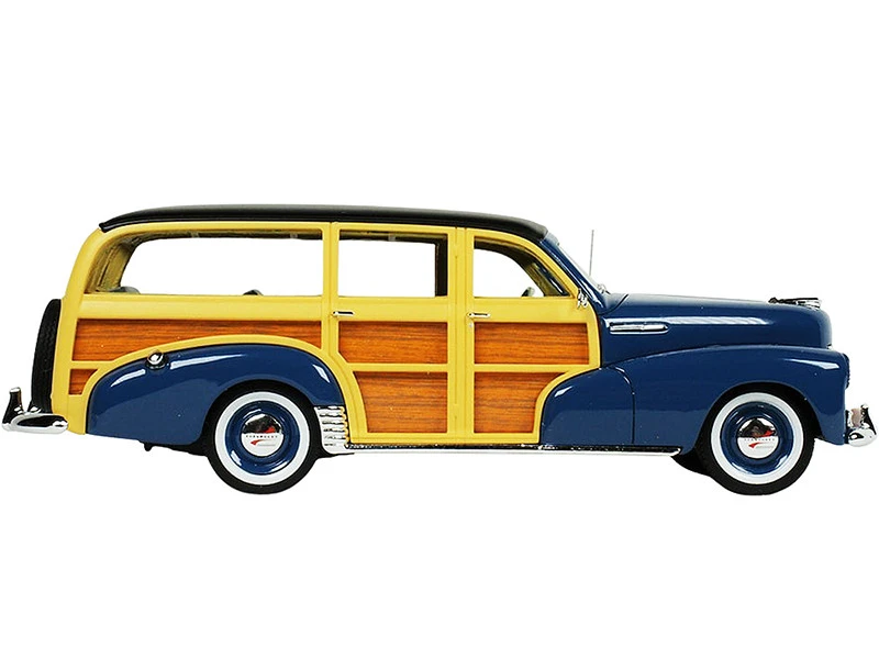 - Brand new 1/43 scale car model of 1948 Chevrolet Fleetmaster Woodie Station Wagon Como Blue with Black Top Limited Edition to 240 pieces Worldwide model car by Goldvarg Collection.