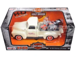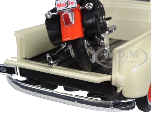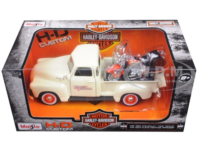 - Brand new diecast models of 1950 Chevrolet 3100 Pickup Truck Cream 1/25 and 2001 FLSTS Heritage Springer Motorcycle Orange 1/24 “Harley-Davidson Custom” Series die cast models by Maisto.