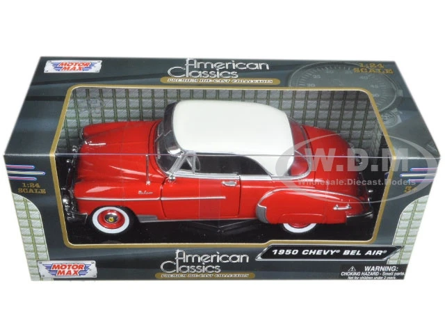 - Brand new 1/24 scale diecast car model of 1950 Chevrolet Bel Air Red with White Top die cast model car by Motormax.