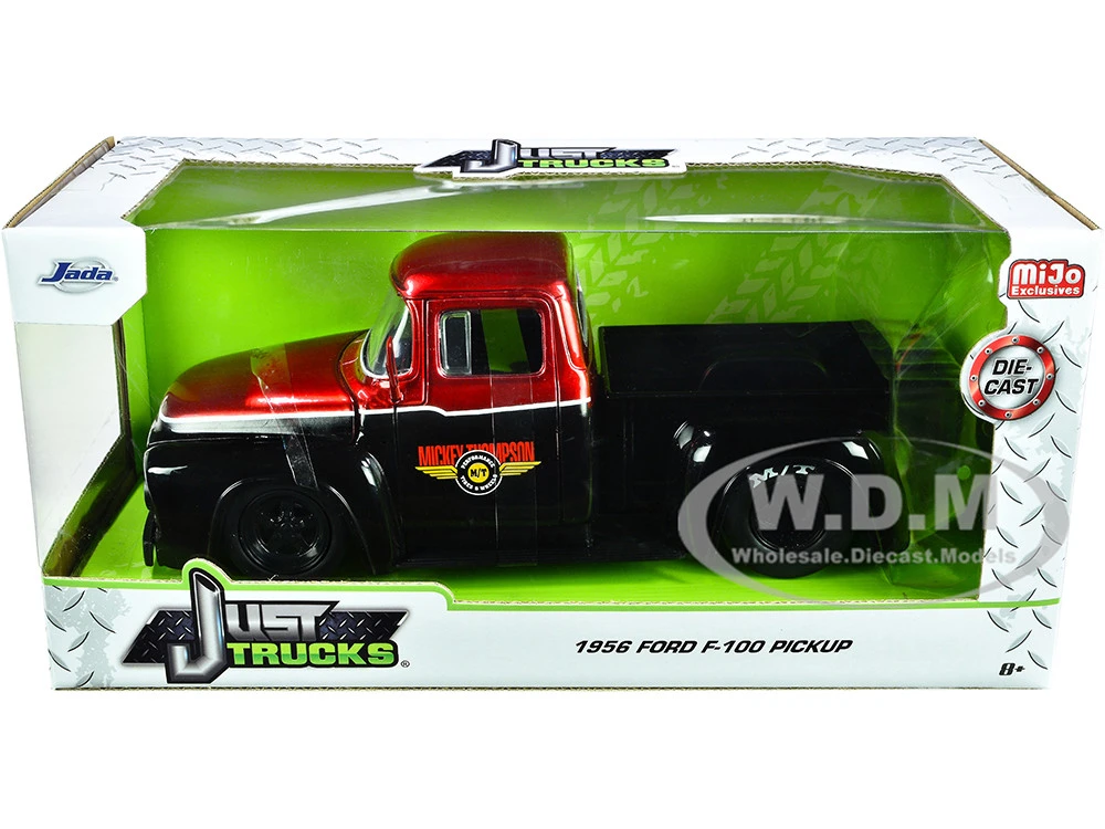 - Brand new 1/24 scale diecast car model of 1956 Ford F-100 Pickup Truck “Mickey Thompson Performance Tires & Wheels” Black and Red Metallic “Just Trucks” Series die cast model car by Jada.