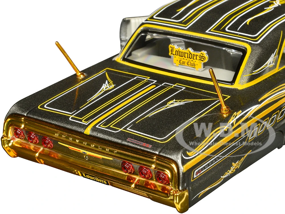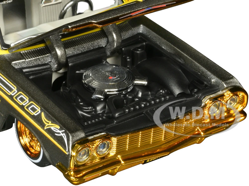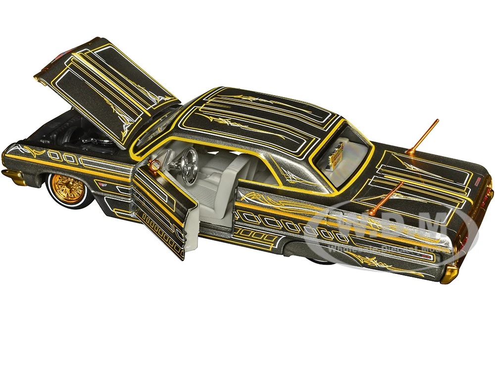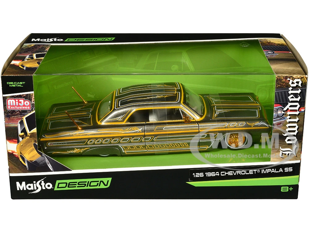 - Brand new 1/26 scale diecast car model of 1964 Chevrolet Impala SS Lowrider Gray Metallic with Gold Graphics “Lowriders” “Maisto Design” Series die cast model car by Maisto.
