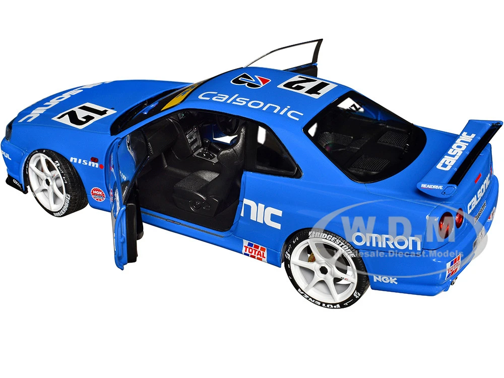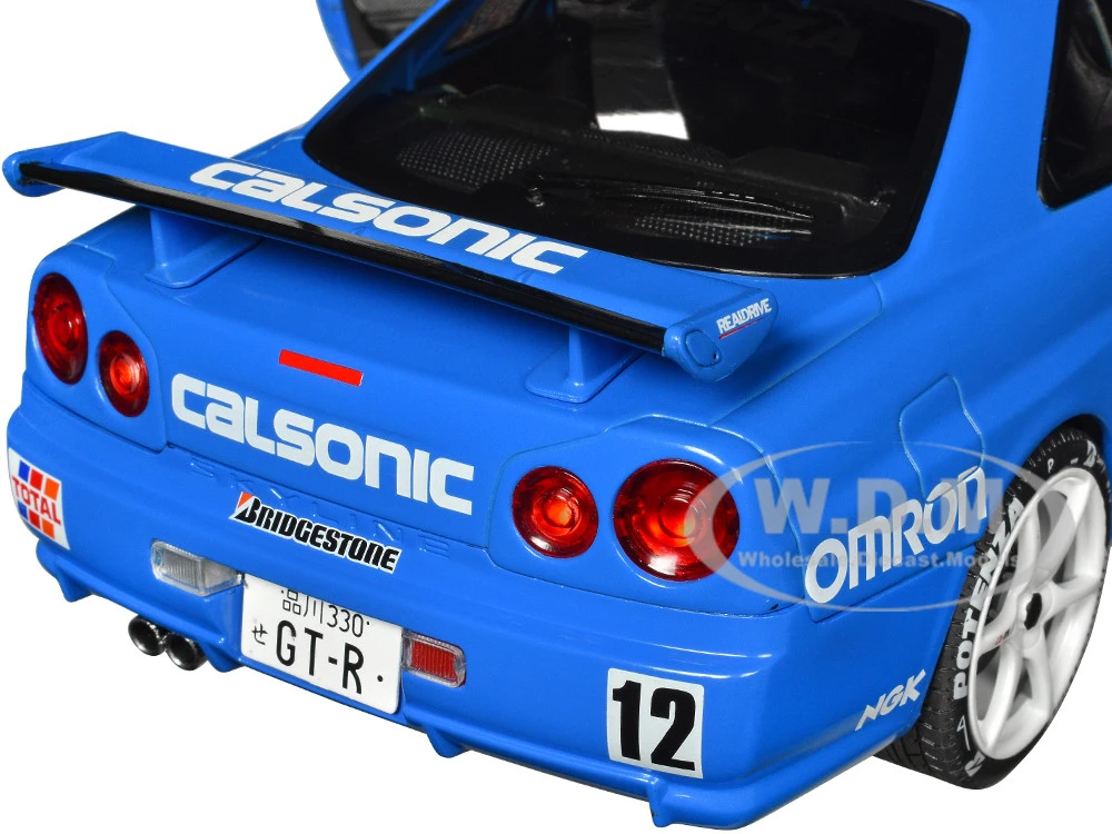 - Brand new 1/18 scale diecast car model of 2000 Nissan Skyline GT-R (R34) Streetfighter RHD (Right Hand Drive) #12 Blue “Calsonic Tribute” “Competition” Series die cast model car by Solido.