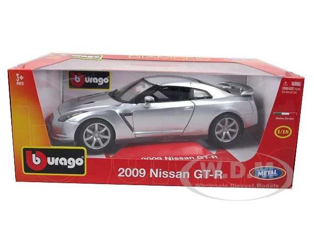 - Brand new 1/18 scale diecast car model of 2009 Nissan GT-R R35 Silver die cast model car by Bburago.