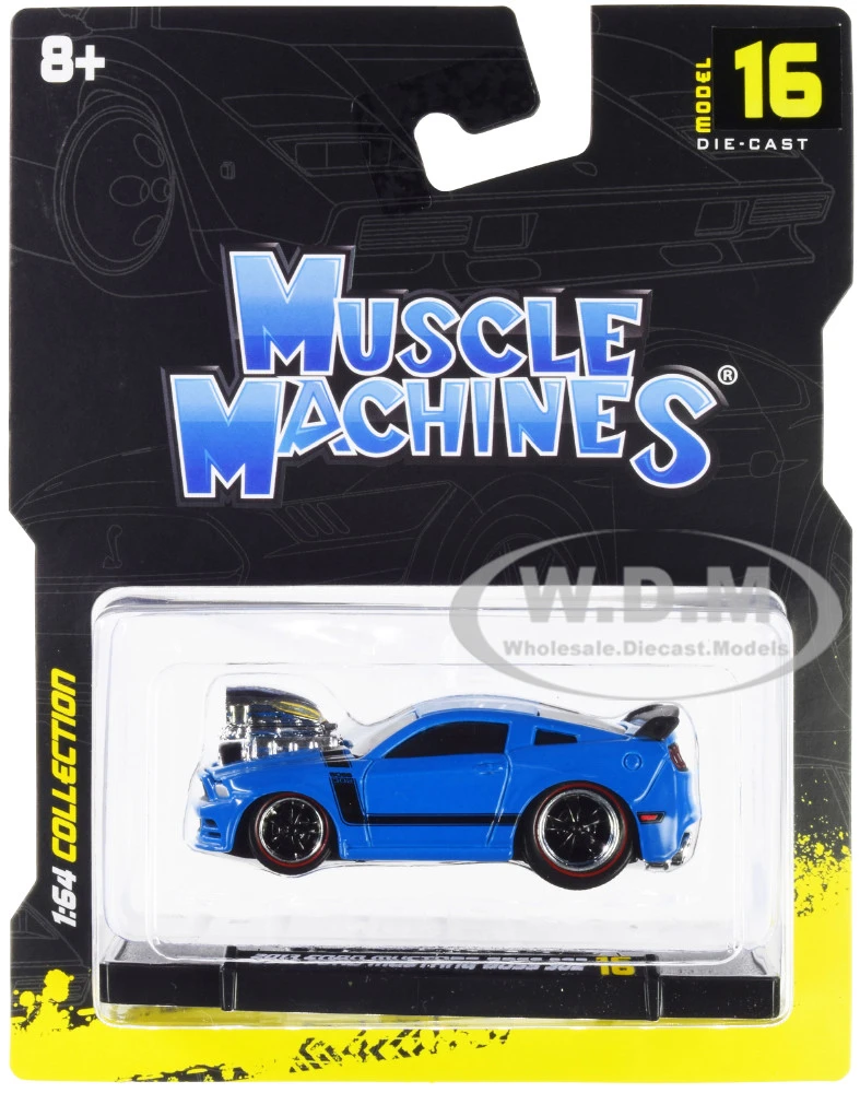 - Brand new 1/64 scale diecast car model of 2013 Ford Mustang Boss 302 Light Blue with Black Stripes die cast model car by Muscle Machines.