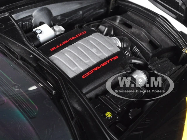 - Brand new 1:18 scale model car of 2017 Chevrolet Corvette C7 Grand Sport Black with White Stripe and Yellow Fender Hash Marks car model by Autoart.