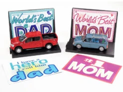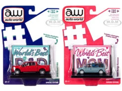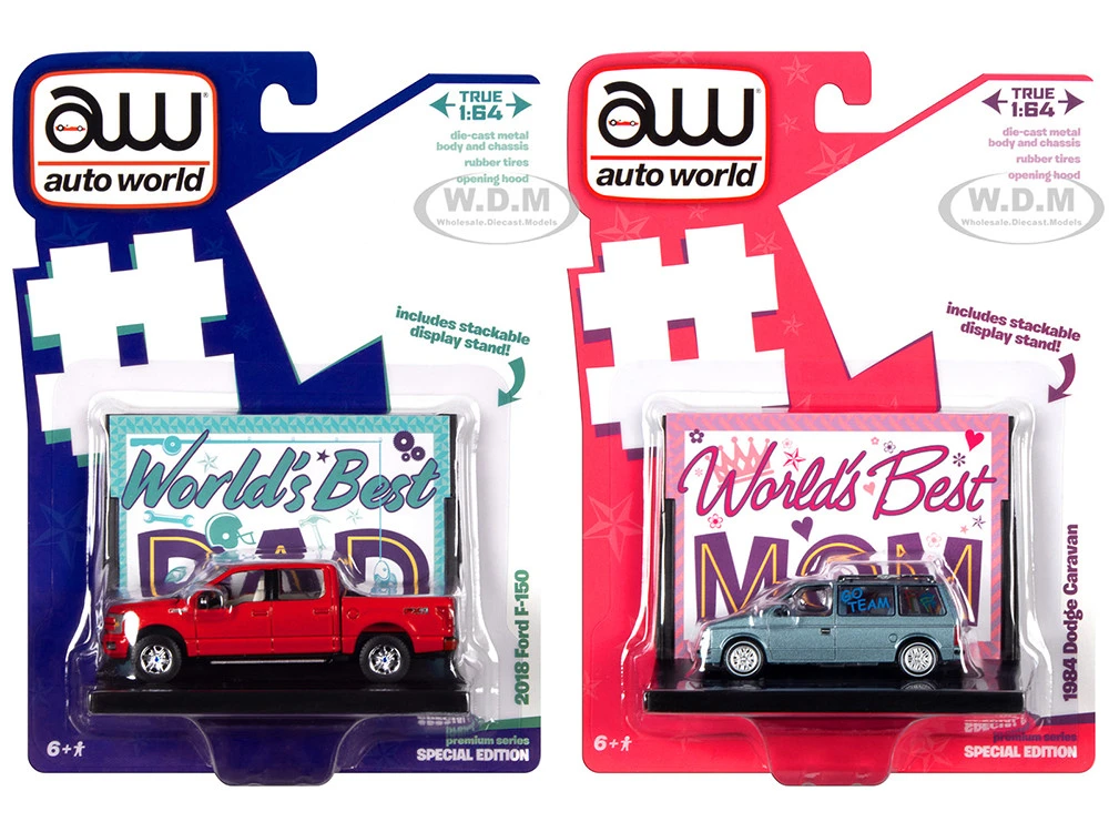 - Brand new 1/64 scale diecast car models of 2018 Ford F-150 Pickup Truck Red and 1984 Dodge Caravan Minivan Blue Metallic “World’s Best Mom and Dad” Set of 2 Pieces die cast model cars by Auto World.