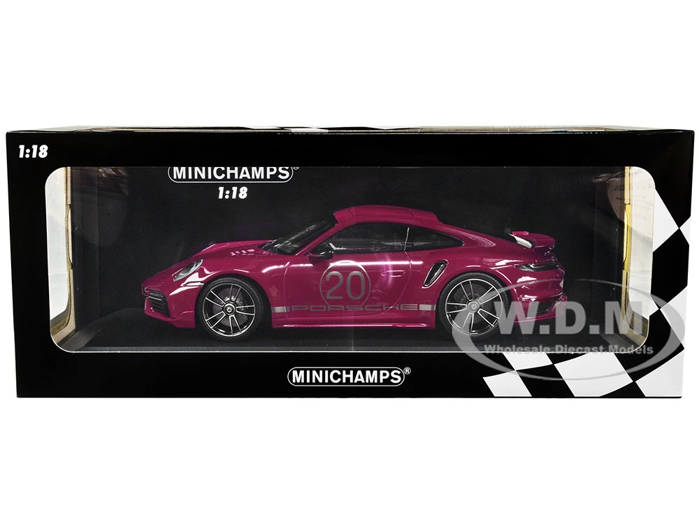 - Brand new 1/18 scale diecast car model of 2021 Porsche 911 Turbo S with SportDesign Package #20 Red Violet with Silver Stripes Limited Edition to 504 pieces Worldwide die cast model car by Minichamps.