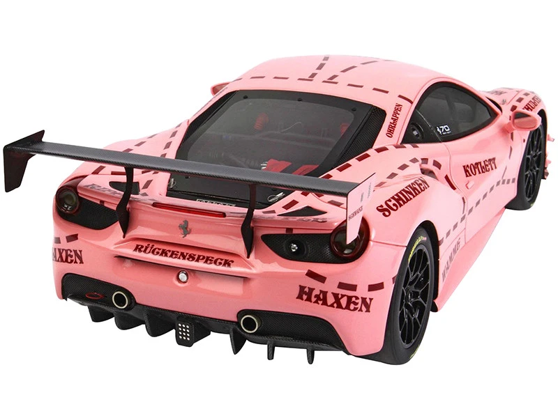 This livery appeared the first time on a Porsche 917-20 of 1971, which raced at 24H Le Mans. Now this livery is offered on 488 Challenge, at 2018 ROLEX 24H Daytona. The red lines are the cuts, and the German words are the name of the part of the most famous farm animal.