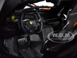 - Brand new 1/18 scale diecast car model of Ferrari FXX-K #5 Fu Songyang Black with Gray Top and Orange Stripes die cast model car by Bburago.