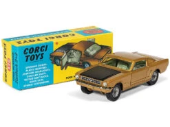 First issued in 1965 by Corgi Toys, the 320 Ford Mustang Fast Back Coupe was released in several colors – but never in this new gold and black version. The livery of this new Corgi model replicates colors used on a rare unreleased test version, now finally widely issued for the first time ever. The model includes opening doors and tipping seats in the interior, and a recreation Corgi Toys pack that has been amended to feature the color of the model inside.