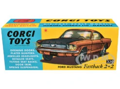 - Brand new diecast car model of Ford Mustang Fastback 2+2 Gold Metallic and Black die cast model car by Corgi.