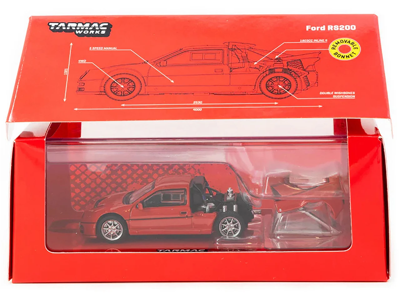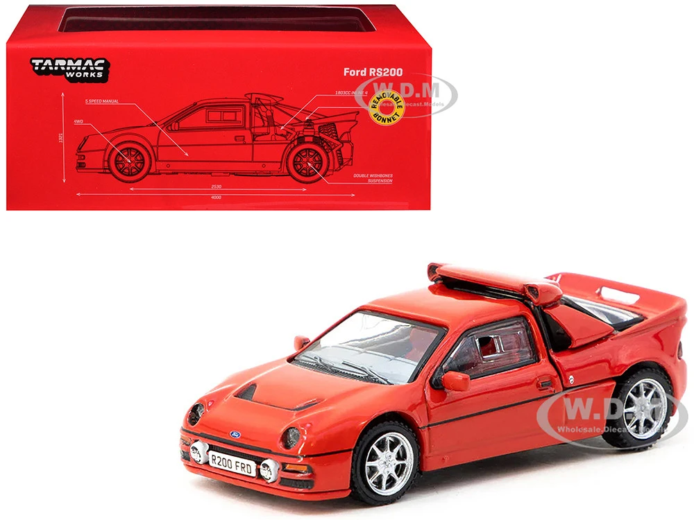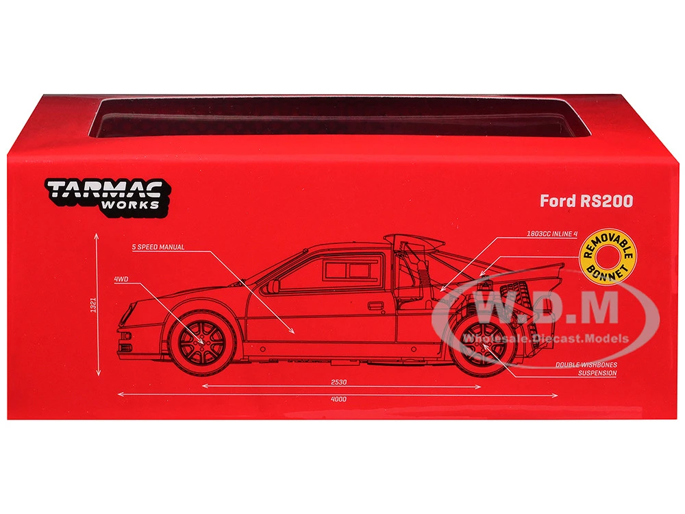 - Brand new 1/64 scale diecast model car of Ford RS200 Red “Hobby64” Series die cast model car by Tarmac Works.