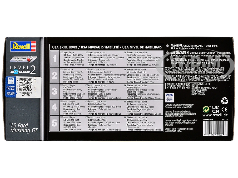 - Brand new plastic model kit of 2015 Ford Mustang GT (Level 2 Easy-Click) 1/25 plastic model kit by Revell.