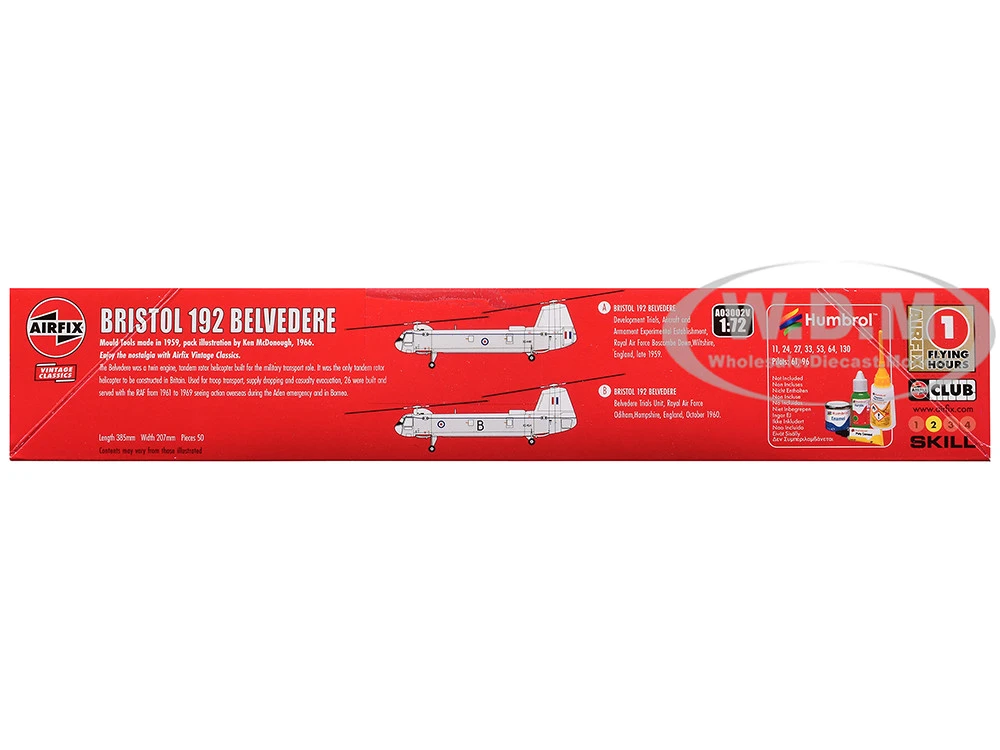 - Brand new plastic model kit of Bristol 192 Belvedere Helicopter with 2 Scheme Options (Level 2) 1/72 plastic model kit by Airfix.