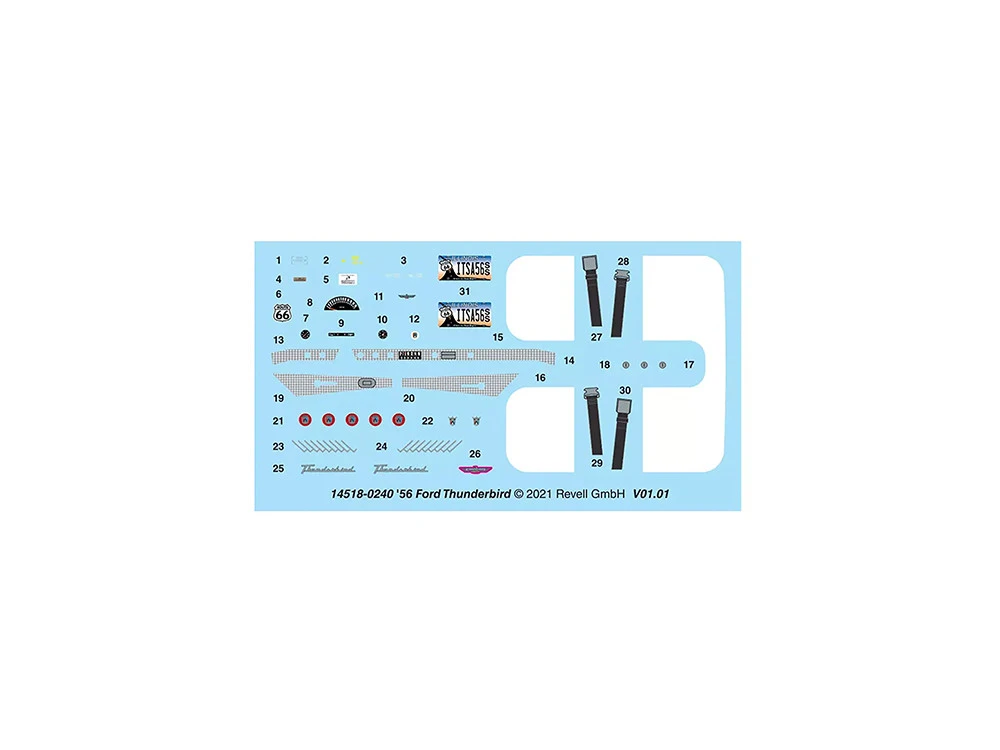 - Brand new plastic model kit of 1956 Ford Thunderbird (Level 4) 1/24 plastic model kit by Revell.