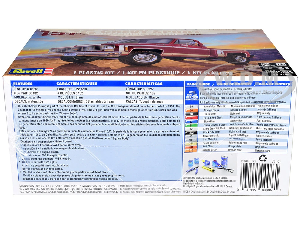 - Brand new plastic model kit of 1976 Chevrolet Sports Stepside 4×4 Pickup Truck (Level 4) 1/24 plastic model kit by Revell.