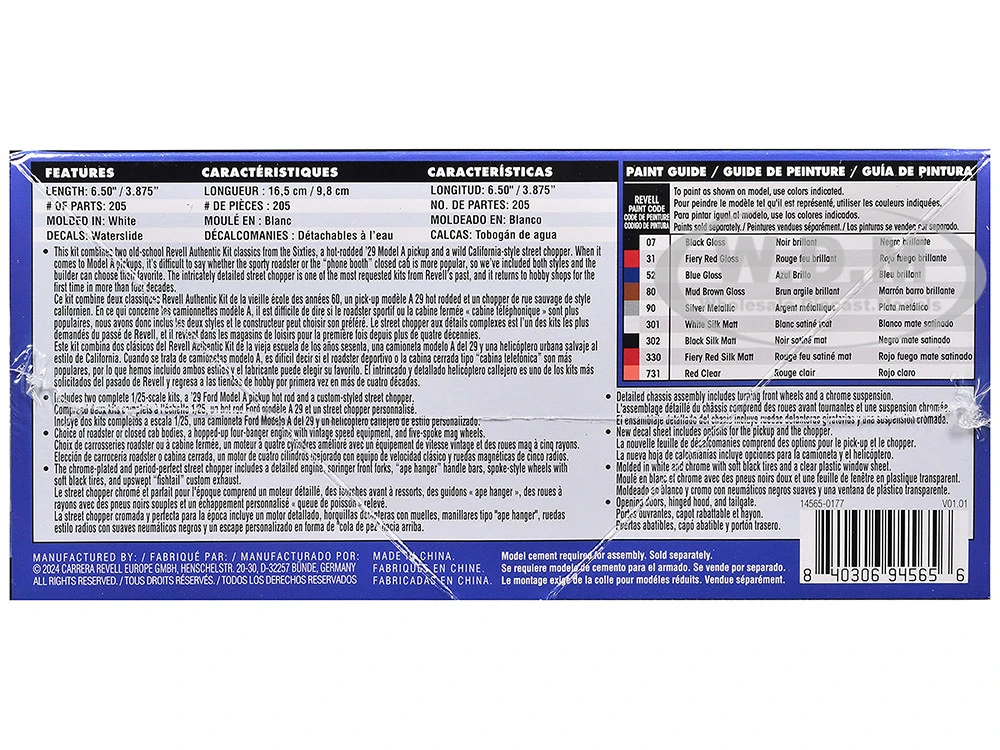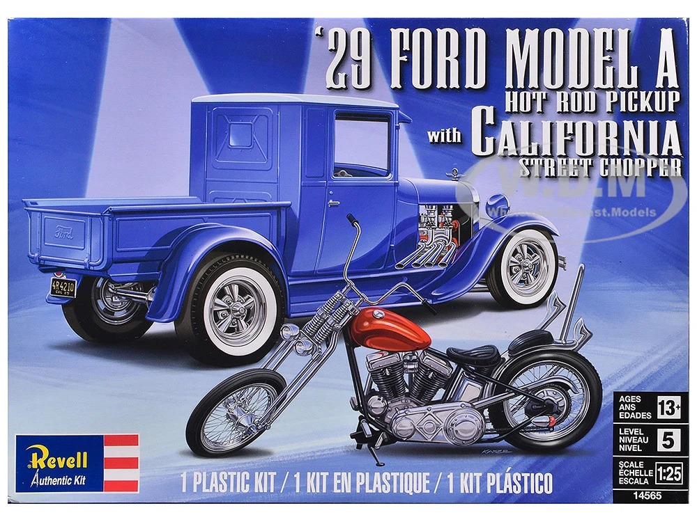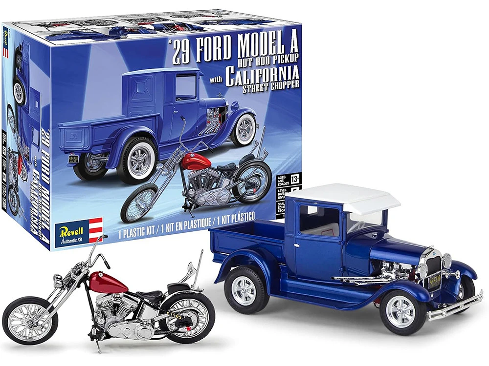 - Brand new plastic model kit of 1929 Ford Model A Hot Rod Pickup Truck and California Street Chopper Motorcycle (Level 5) 1/25 plastic model kit by Revell.