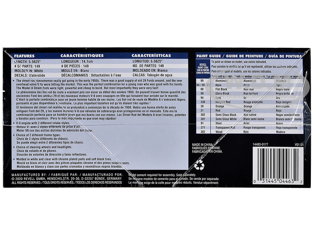 - Brand new plastic model kit of 1929 Ford Model A Roadster 2-in-1 Kit (Level 5) 1/25 plastic model kit by Revell.
