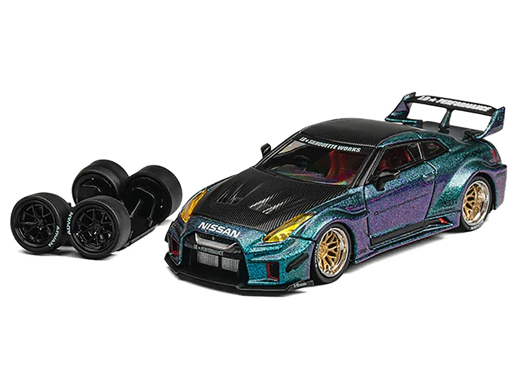 - Brand new 1/64 scale diecast car model of Nissan 35GT-RR “LB-Silhouette Works GT” RHD (Right Hand Drive) Magic Purple Metallic with Extra Wheels die cast model car by CM Model.