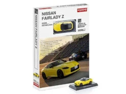 - Brand new 1/64 scale diecast car model of Nissan Fairlady Z RHD (Right Hand Drive) Ikazuchi Yellow with Black Top with Mini Book No.13 die cast model car by Kyosho.