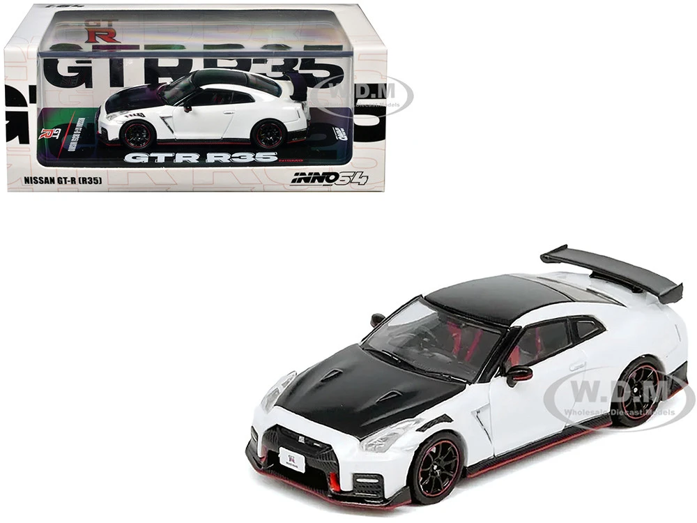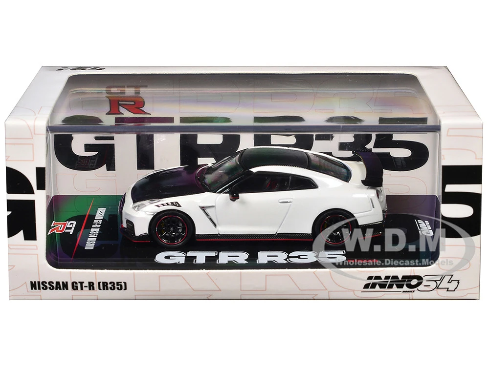 - Brand new 1/64 scale diecast car model of Nissan GT-R (R35) Nismo RHD (Right Hand Drive) White with Carbon Hood and Top die cast model car by Inno Models.