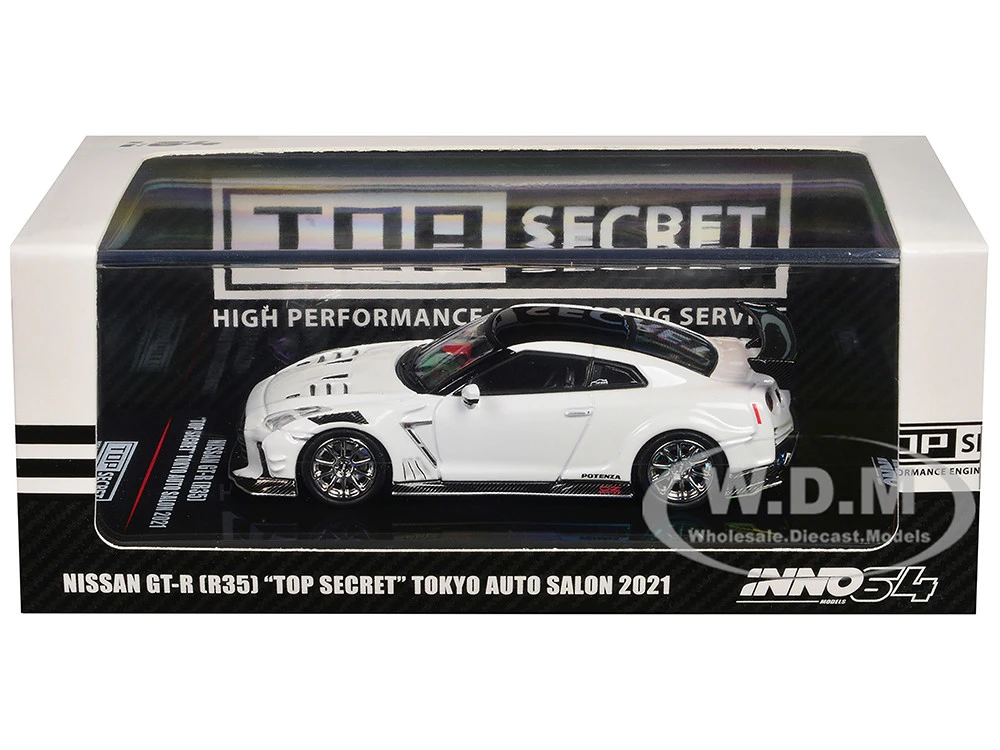 - Brand new 1/64 scale diecast car model of Nissan GT-R (R35) “Top Secret” RHD (Right Hand Drive) White with Black Top “Tokyo Auto Salon 2021” die cast model car by Inno Models.