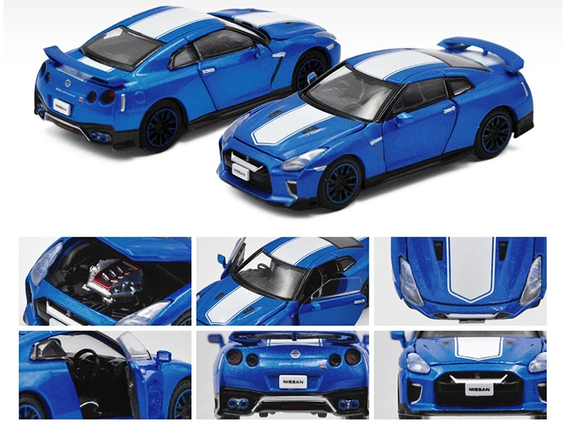 - Brand new 1/64 scale diecast car model of Nissan GT-R RHD (Right Hand Drive) Bayside Blue with White Stripe “50th Anniversary Edition” Limited Edition to 1200 pieces die cast model car by Era Car.
