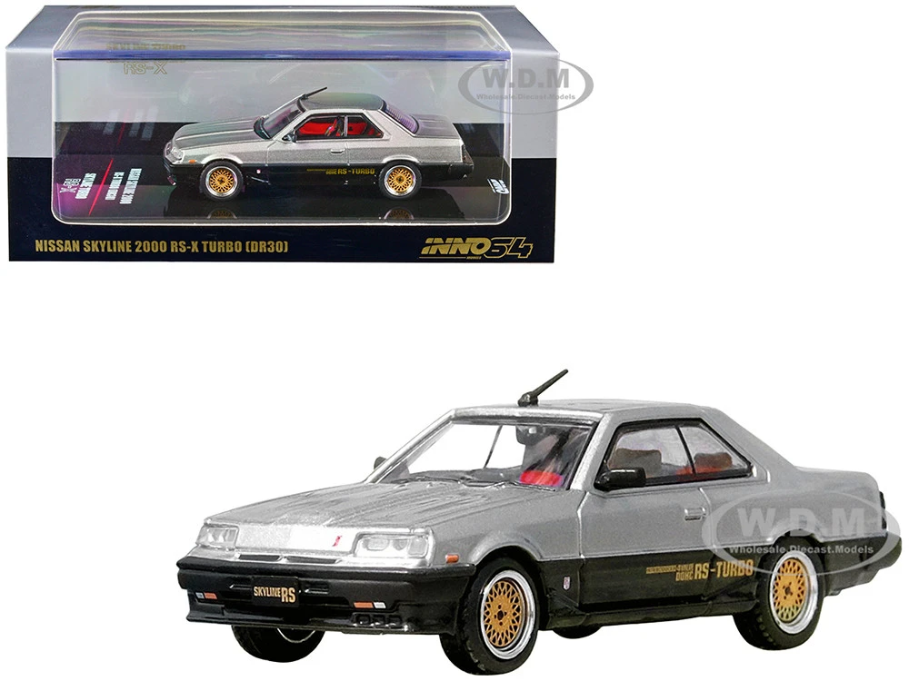 - Brand new 1/64 scale diecast car model of Nissan Skyline 2000 RS-X Turbo (DR30) RHD (Right Hand Drive) Silver and Black die cast model car by Inno Models.