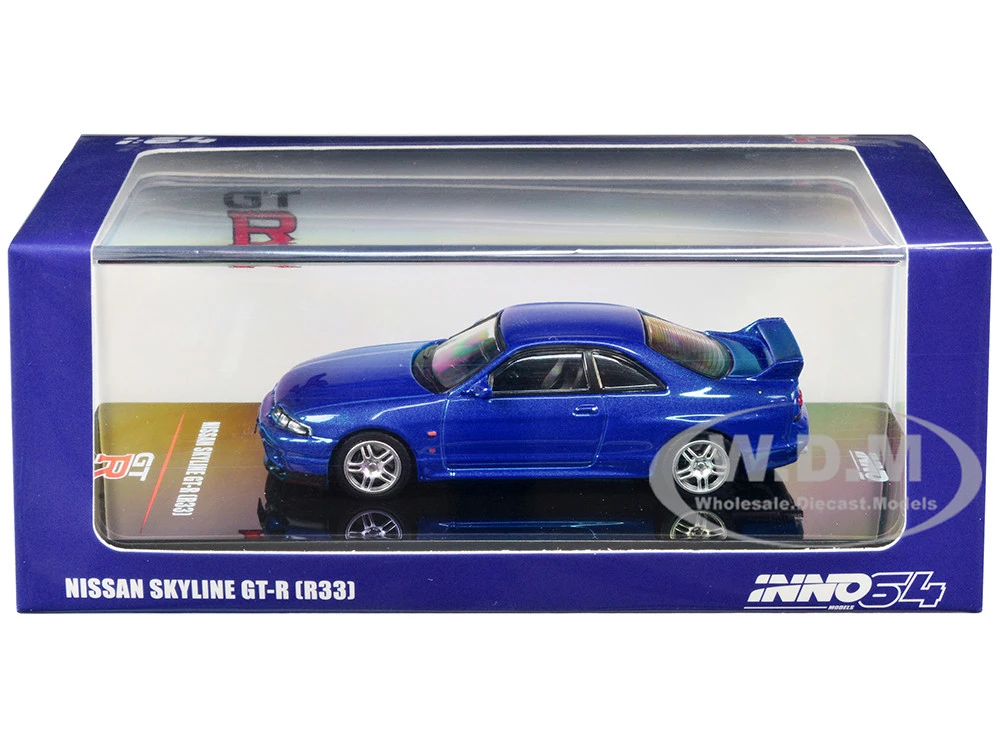 - Brand new 1/64 scale diecast car model of Nissan Skyline GT-R (R33) RHD (Right Hand Drive) Bayside Blue Metallic die cast model car by Inno Models.