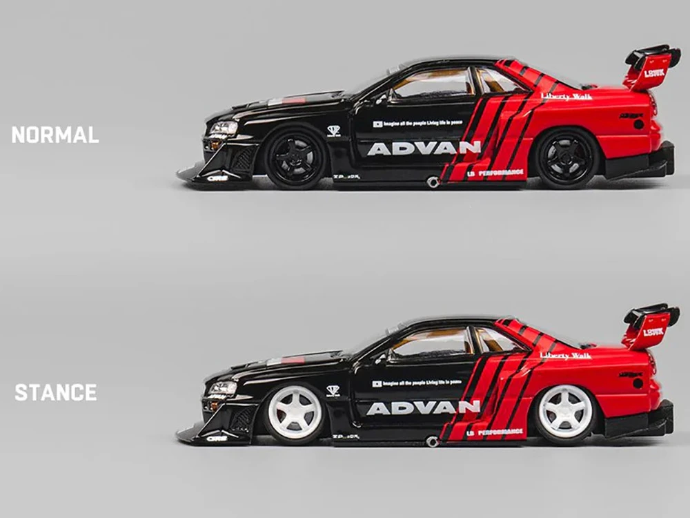 - Brand new 1/64 scale diecast car model of Nissan Skyline LB-ER34 “Super Silhouette” RHD (Right Hand Drive) “ADVAN” Black and Red with Extra Wheels die cast model car by CM Model.