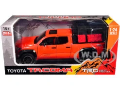 - Brand new 1/24 scale diecast car model 2024 Toyota Tacoma TRD Off-Road Edition Pickup Truck Octane Orange with Bed Camper die cast model car.