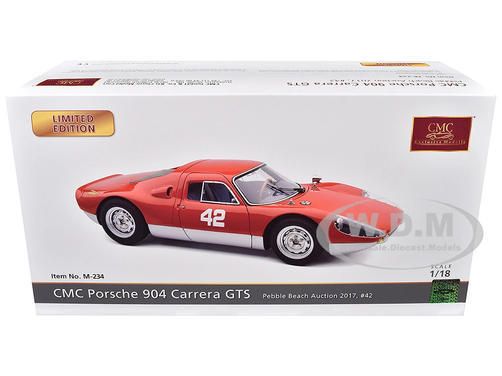- Brand new 1/18 scale diecast car model of Porsche 904 Carrera GTS #42 Red “Pebble Beach Auction 2017” Limited Edition to 1000 pieces Worldwide die cast model car by CMC.
