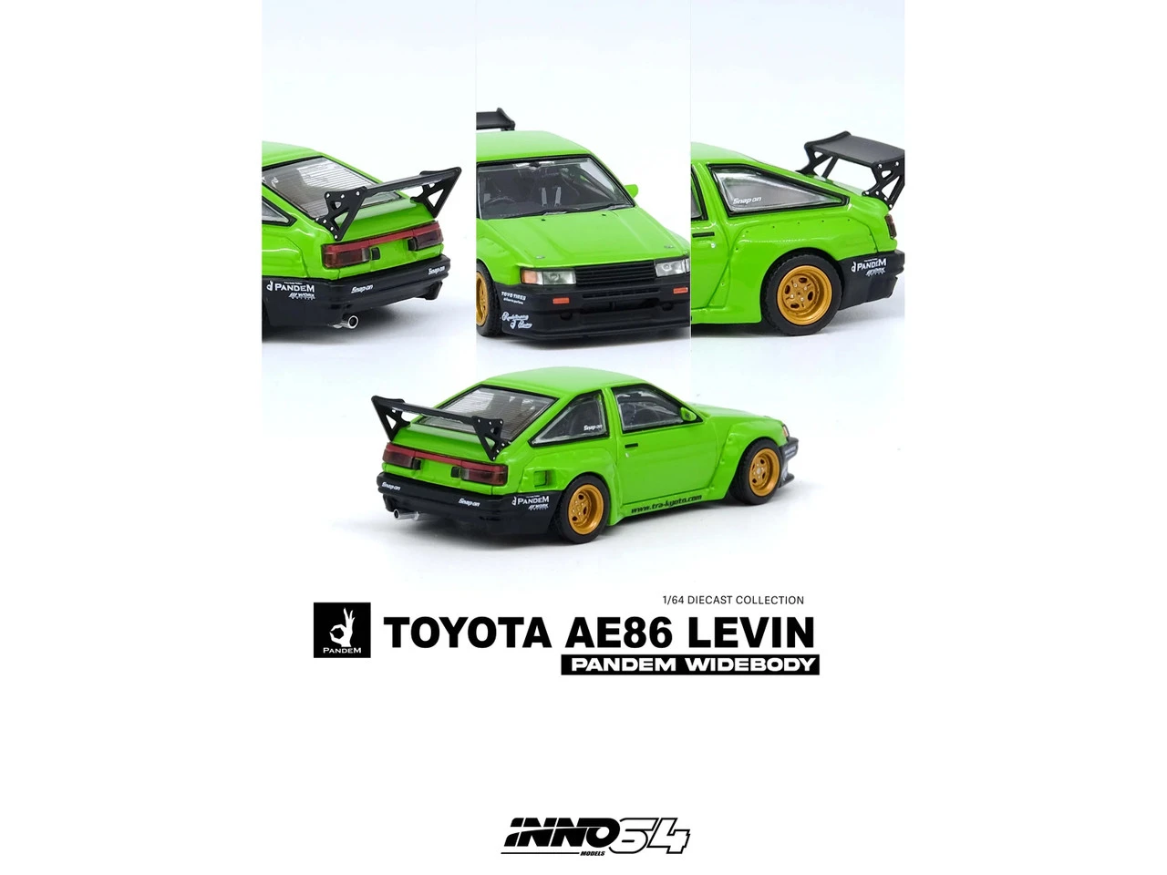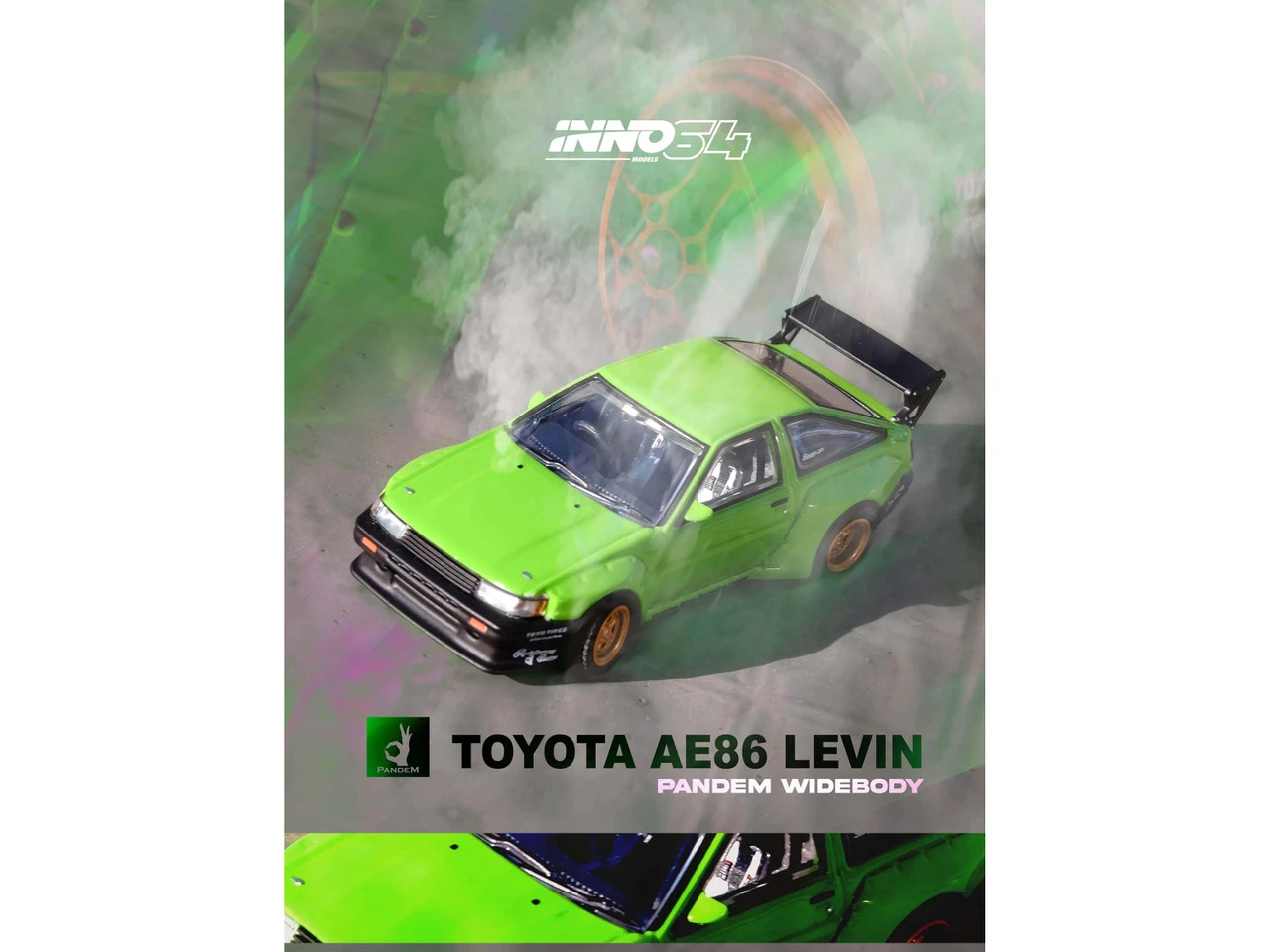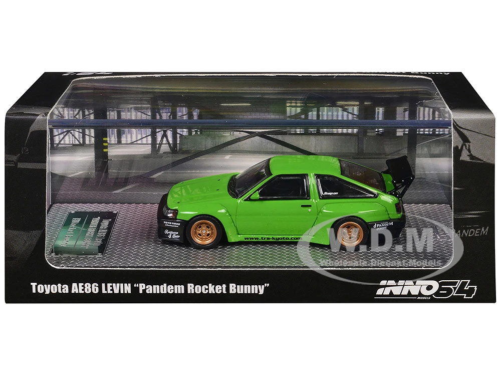 - Brand new 1/64 scale diecast car model of Toyota AE86 Levin RHD (Right Hand Drive) “Pandem Rocket Bunny” Green die cast model car by Inno Models.
