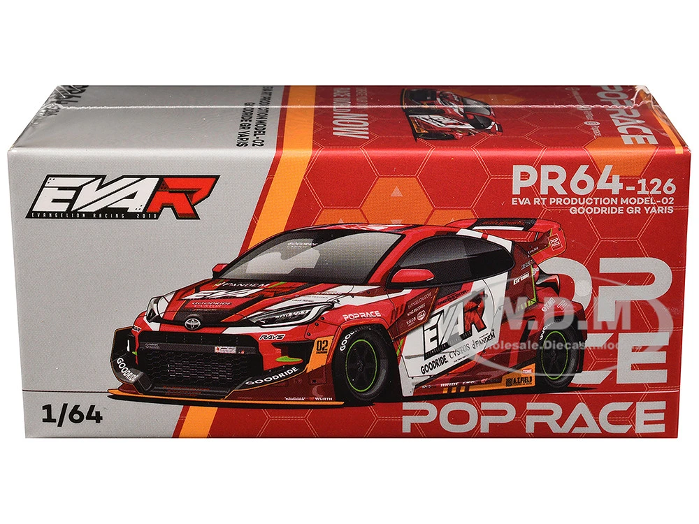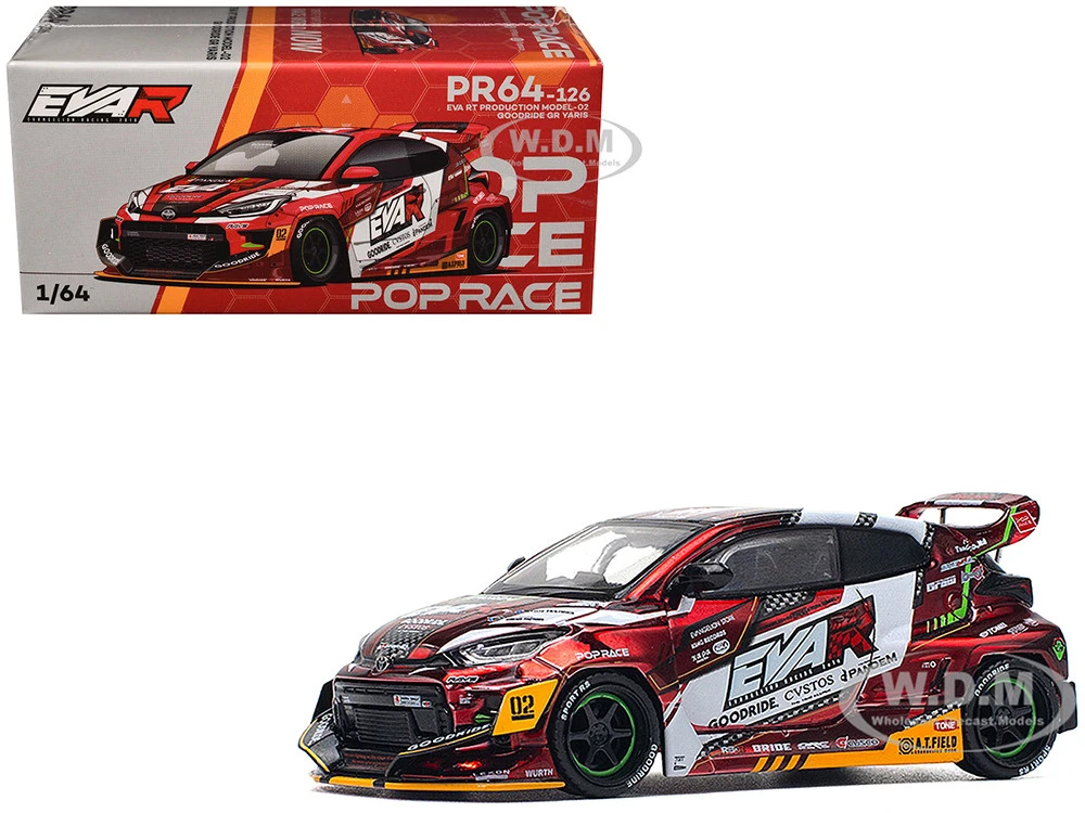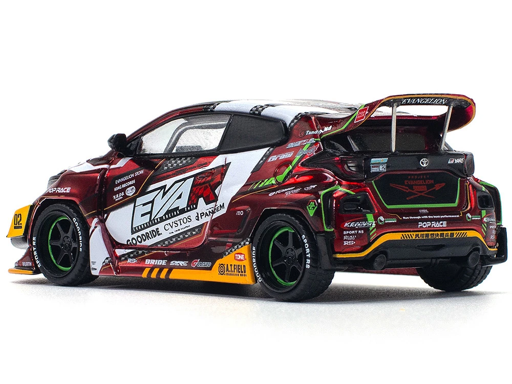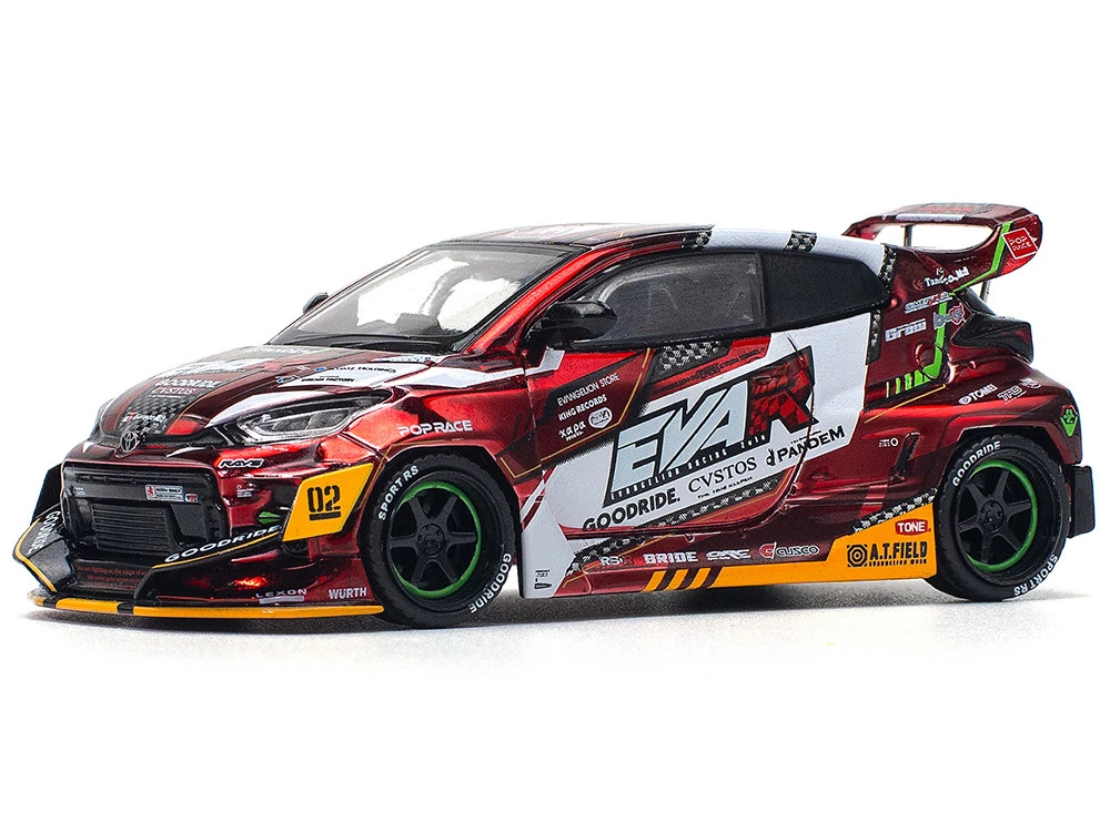 - Brand new 1/64 scale diecast car model of Toyota Goodride GR Yaris RHD (Right Hand Drive) “EVA RT Production Model-02” Red Metallic with Graphics die cast model car by Pop Race.